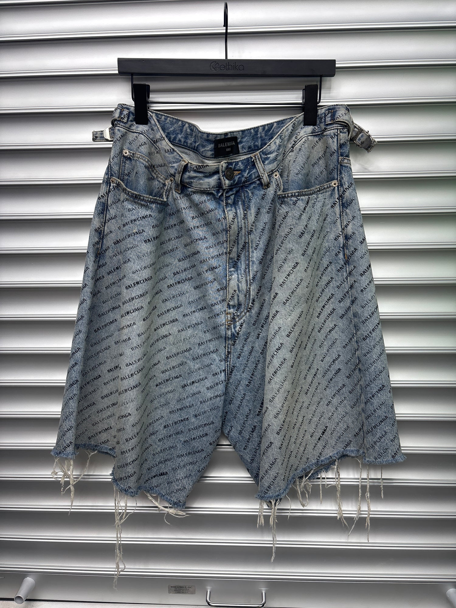 Balenciaga All Over Print Denim Shorts - M